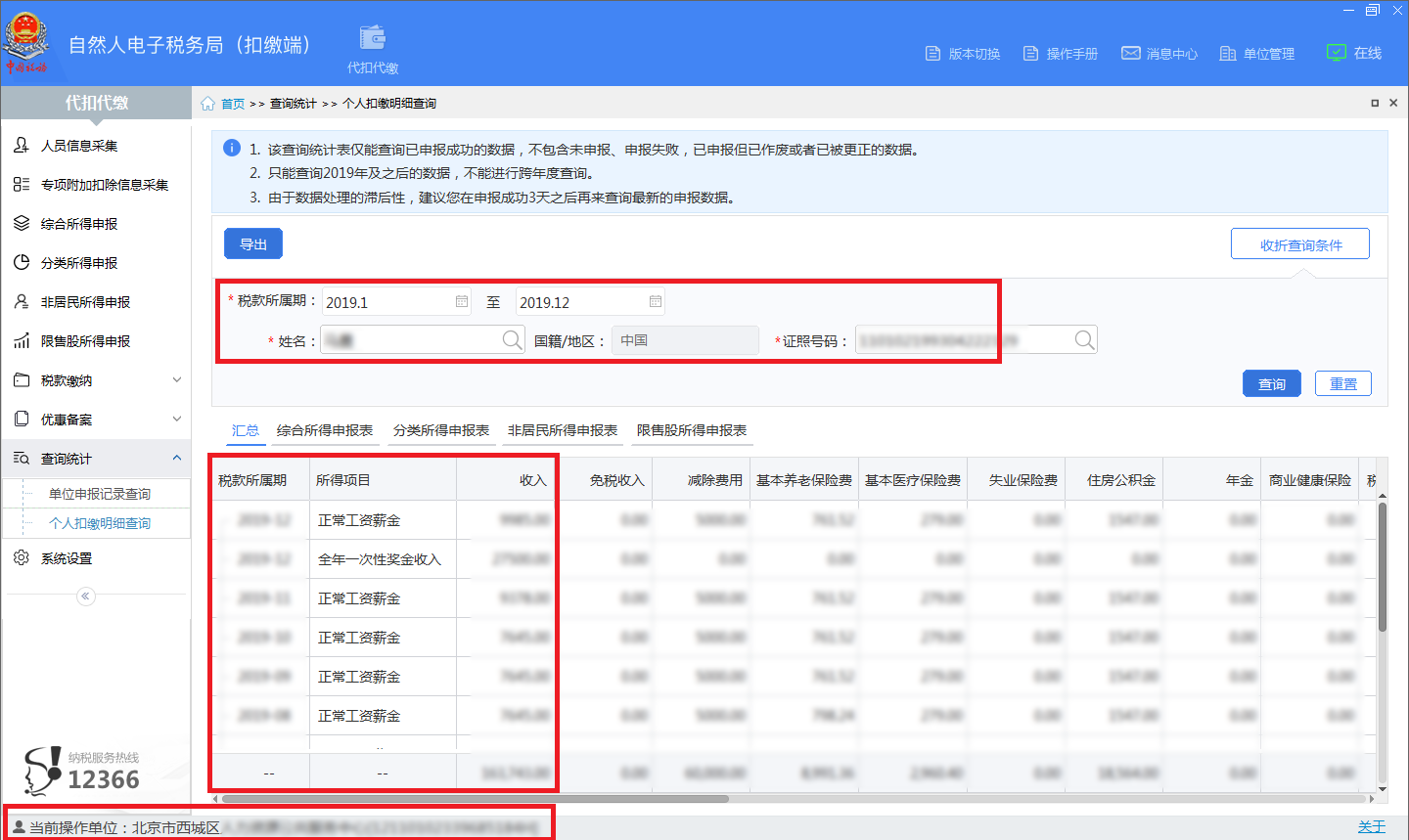 申请单位“自然人税收管理系统扣缴客户端”中给予清晰完整截图